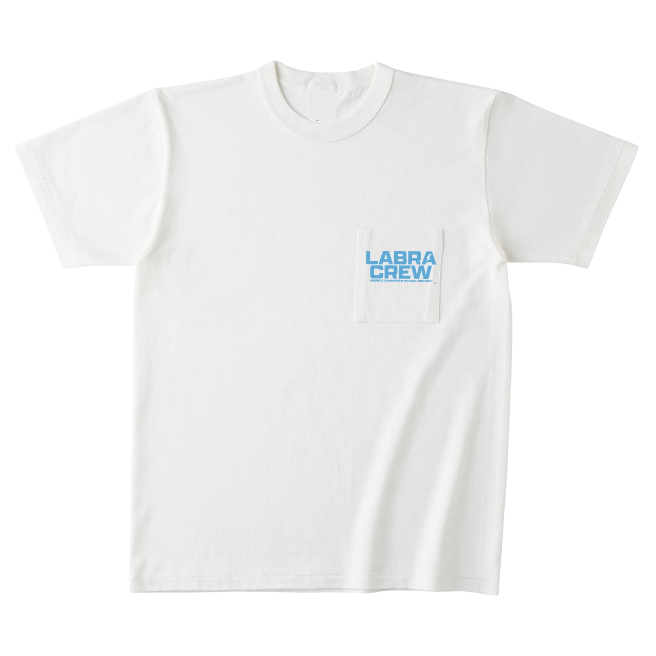 シンプルな“LABRA CREW”ロゴを左胸ポケットと背中に配したポケットT。太めの約2.5cmバインダーネックと重ね縫い仕様が無骨でクラシックな印象。