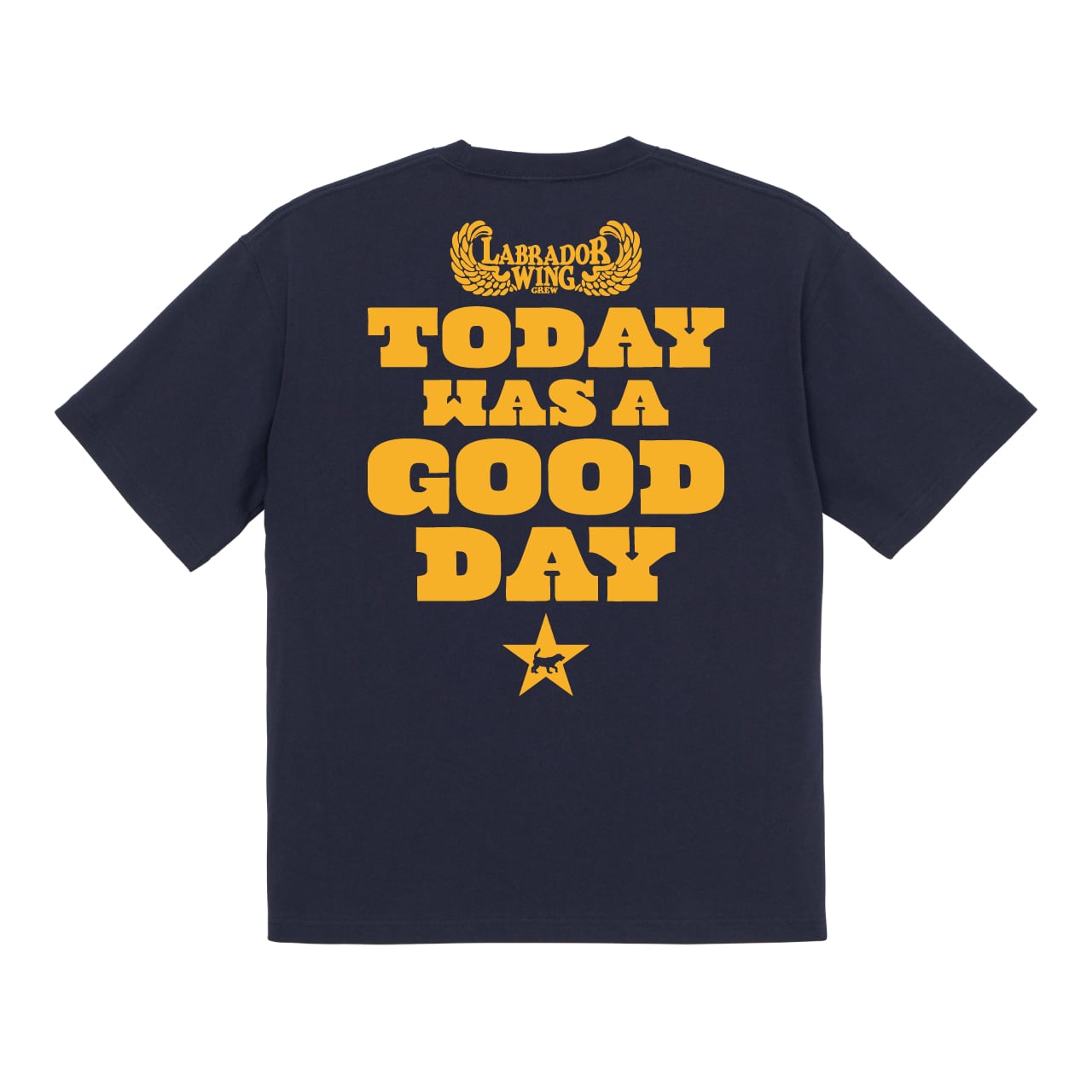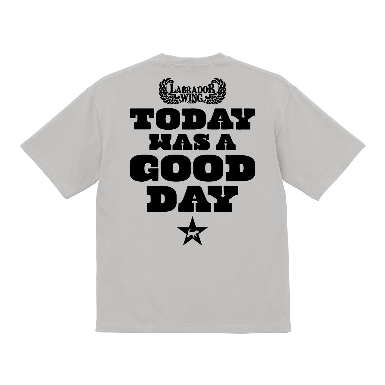 左胸には、存在感のあるLABRA CREWのワッペン。背中には、愛犬と充実した1日を過ごしたあとに自然と言いたくなるメッセージ、“TODAY WAS A GOOD DAY”をプリントしました。何気ない毎日を特別な記憶に変えてくれるデザインです。